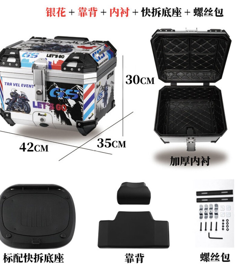 ABS尾箱45l大容量摩托车滑板车电动车工具箱快拆大型非铝合金尾箱