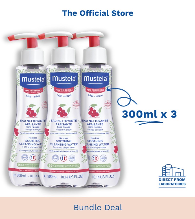 [Mustela Bundle Deal] Soothing No-Rinse Cleansing Water (Fragrance-free) 300ml (exp 06/2025) [Sensitive Skin] [Diaper Change Care]