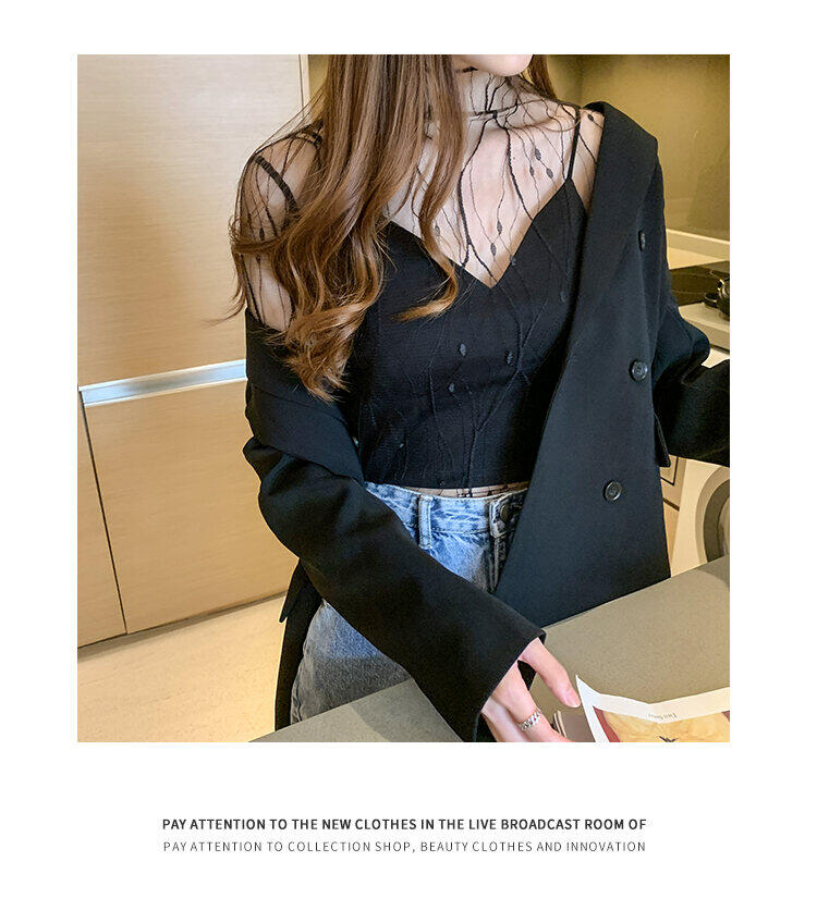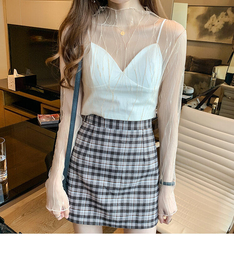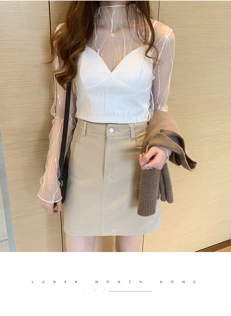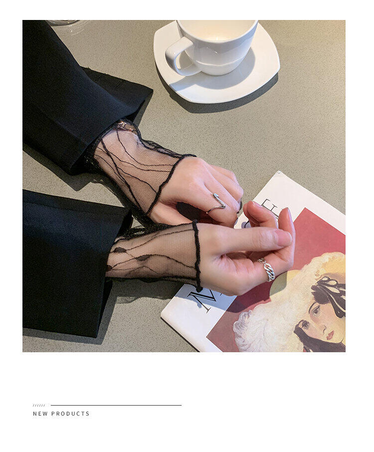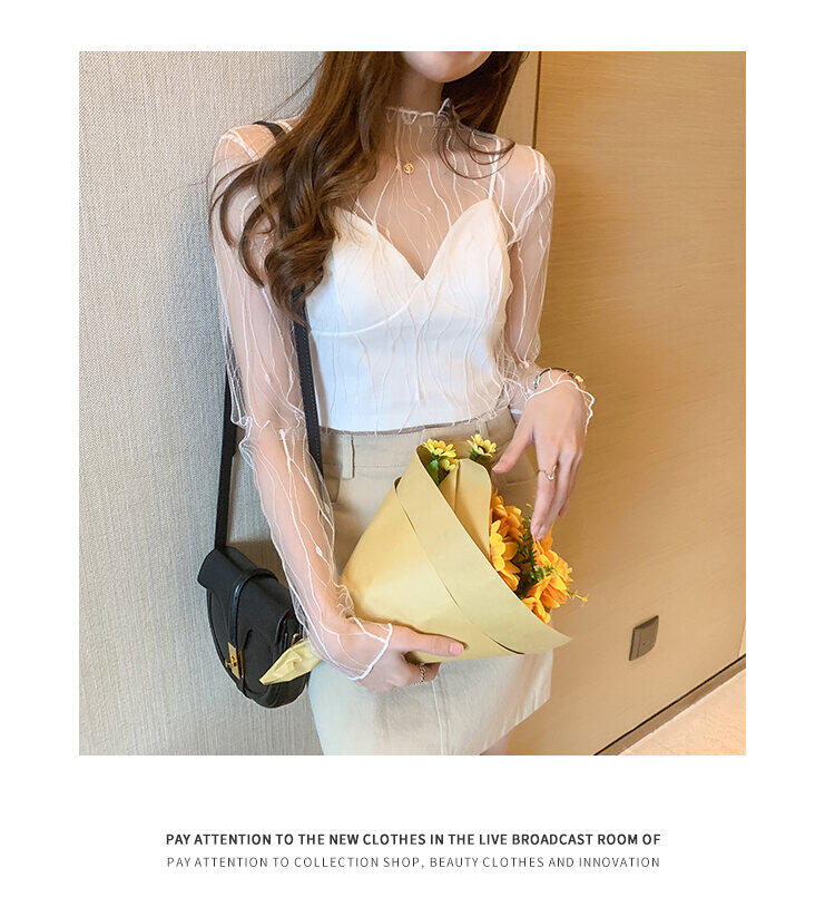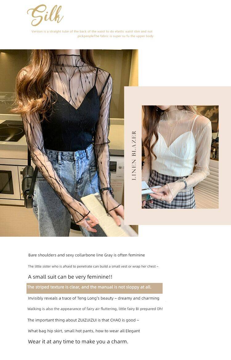 Spring and Autumn Simple Long Sleeves Fairy See-through Lace Mesh