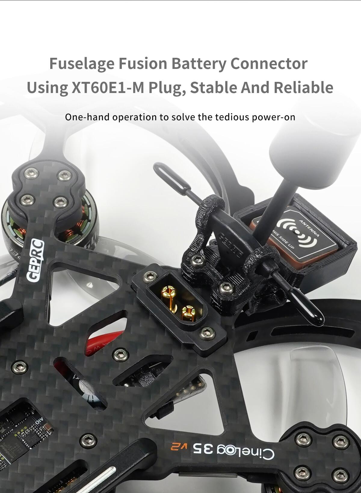 6. Power cable using XT60E1-M plug and carbon plate integrated design, convenient application.